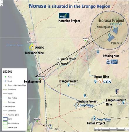 Past mineral producers in the country include uranium, diamonds, copper and gold. Additionally, Namibia is the second largest producer of uranium – with 350 million pounds produced over the past 45 years and an annual average of 23 million pounds – and is the fifth largest country by uranium resources at more than 1,500 million pounds, which means Forsys Metals couldn’t be in a better position to advance the Norasa project.
