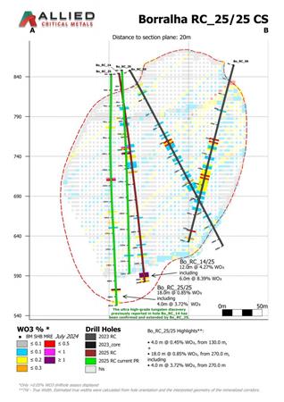 (Geological cross-section for hole Bo_RC_27/25. Source: Allied Critical Metals Inc.)