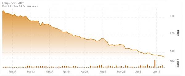 Canopy Growth Corp. stock – Dec 2022 to June 2023.