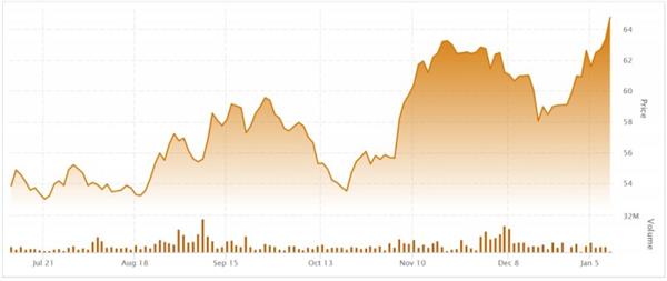 Suncor Energy stock (TSX:SU) closed Friday trading 2.55 per cent higher at C$64.95 and has risen nearly 15 per cent since this time last year.