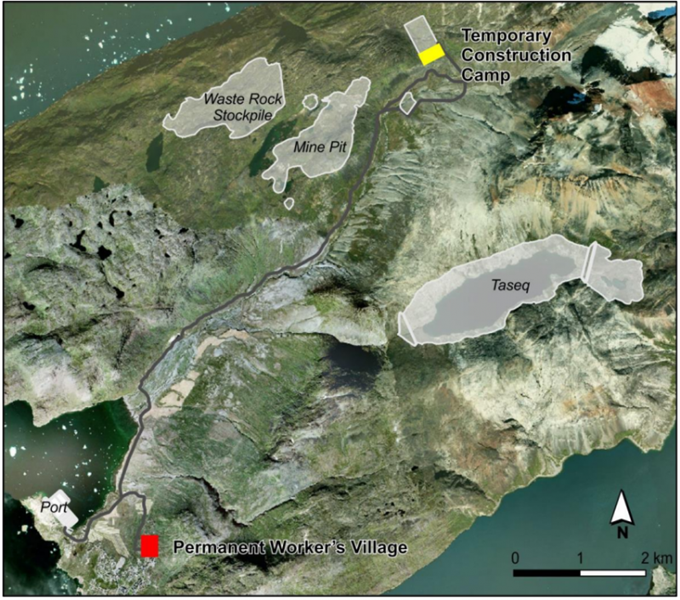(Location of the Village and the temporary construction worker’s camp. Source: Energy Transition Minerals Ltd.)