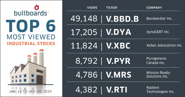 Every week we highlight the most-viewed companies by sector and this week we’re looking at the top of the top. While investors might expect cannabis given the big week the sector had, finding industrials and tech might be a bigger surprise.