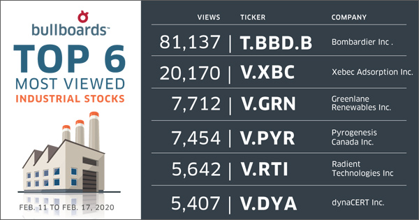 eclipsed the top industrial Bullboards when it forecasted a hugely disappointing year and floated the idea that it was departing the commercial aviation business, the Canadian manufacturer was the most-viewed Bullboard across all sectors this week. The big news? On top of selling its venture in the A220 airliner, the company announced it was