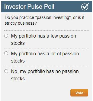 This brings us to this week’s investor poll on Stockhouse – Do you practice “passion investing” of any kind? An investment where making money is only part of why you’re involved, you love what a company is doing and the bottom line of making a bigger return than you invested maybe isn’t as crucial as seeing where the company develops. Click the poll below to head over to vote!