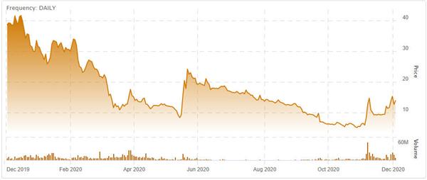 (Aurora Cannabis stock chart, Dec 2019 – Dec 2020. Click to enlarge.)