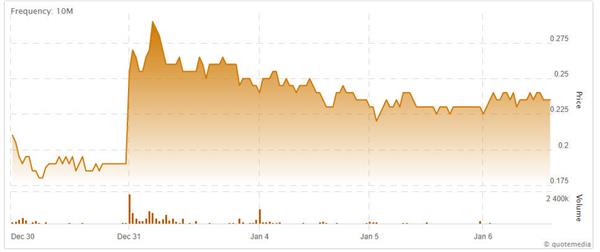 (MedMira Inc. stock chart – Late Dec 2020 to early Jan 2021. Click to enlarge.)