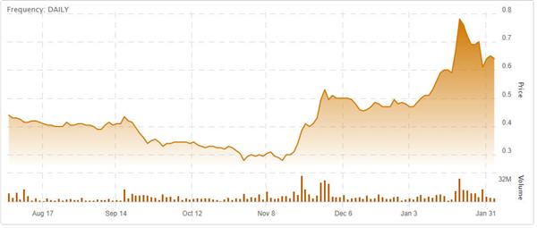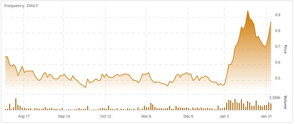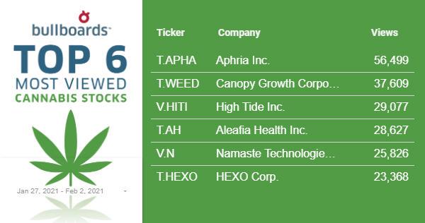 Aphria Inc. (TSX: APHA, Forum) were up 87% in January and continues to gain ground on news that the LP has added