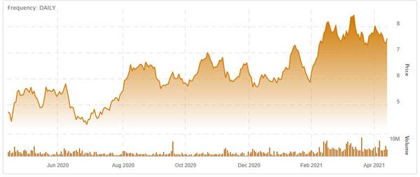 (ARC Resources Ltd. stock chart - April 2020 to April 2021. Click to enlarge.)