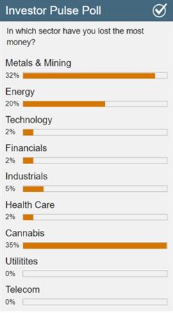Taking a look at last week’s survey … it seems a solid majority of you saw most of your money go up in smoke in the cannabis sector …. Surprise, surprise.