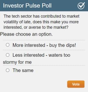 New Buzz, new Investor Pulse Poll. This time, we look at the tech sector, which has contributed to market volatility of late, does this make you more interested, or averse to the market? Let us know your thoughts by clicking the image below to cast your vote.