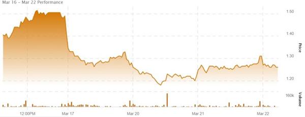 HEXO Corp. stock chart – Mar 16 – Mar 22, 2023.