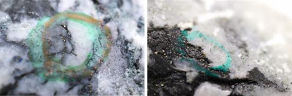 Photos of mineralization from NFGC-23-1171: Left: at 42.5 metres Right: at 43 metres. Source: New Found Gold Corp.