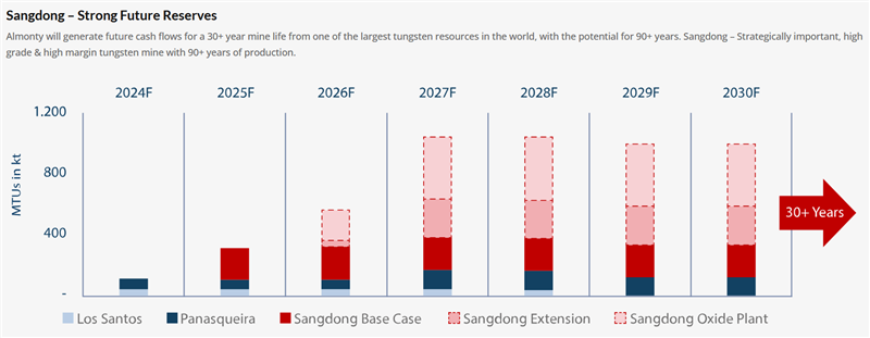 Development of tungsten production in Sangdong through 2027. (Source: Almonty Industries)