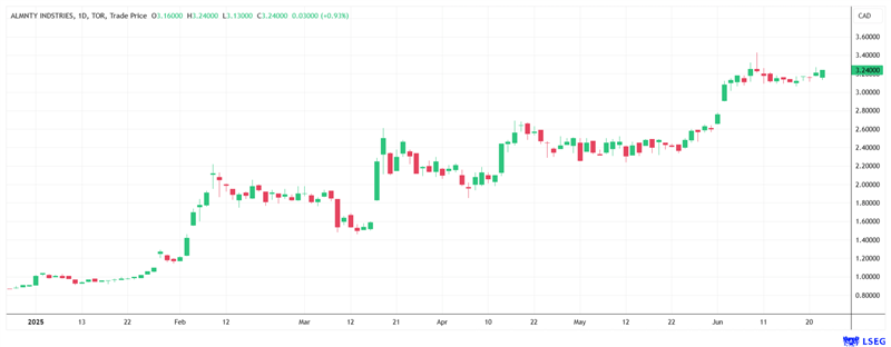 Chart of Almonty Industries. (Source: refinitiv.com)