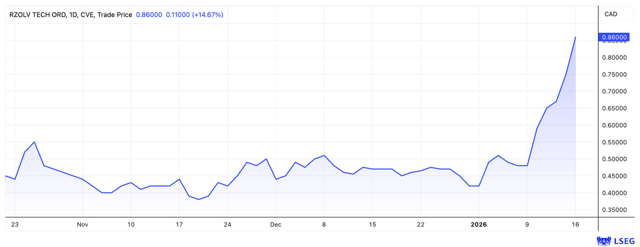 The market potential for RZOLV is huge. It took a while for the stock to be discovered, but it finally took off in January and is now also traded on the Frankfurt Stock Exchange. With a market capitalization of around CAD 50 million, the price potential still appears to be high.
