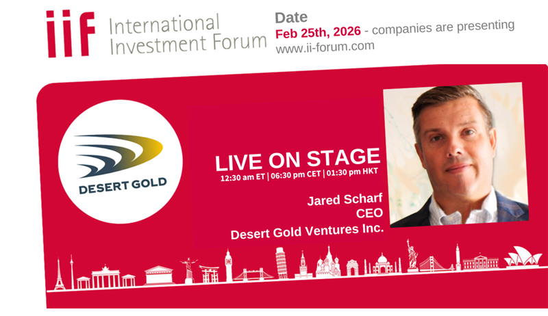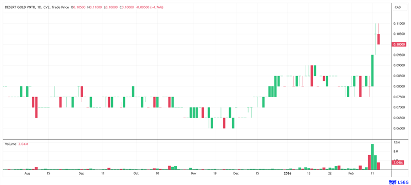 Desert Gold chart, as of February 13, 2026. Source: Refinitiv