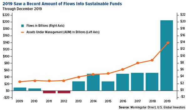 For many years now, ESG has been a niche focus, seeing muted flows by only the most “green”-minded investors. A tipping point seems to have occurred in 2019, though, with net flows into open-end and exchange-traded ESG funds topping $20.6 billion, according to Morningstar data. That’s four times the amount that such funds attracted the previous year. ESG appears to have gone mainstream.