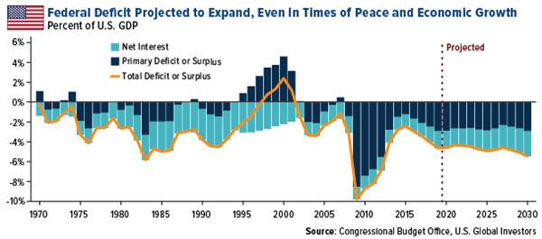 Also top of mind among several presenters was the longevity of the U.S. stock bull market. One of the biggest long-term risks continues to be runaway federal spending. The Congressional Budget Office (CBO) last week released its projection that the federal deficit—or the difference between tax revenues and spending—will exceed $1 trillion in 2020 and all subsequent years if nothing changes. That’s unprecedented in times of peace and economic growth. It also threatens to curb additional expansion, as debt service will increasingly grow as a percent of federal expenditures, siphoning away funds that could instead be spent on infrastructure, defense and more.