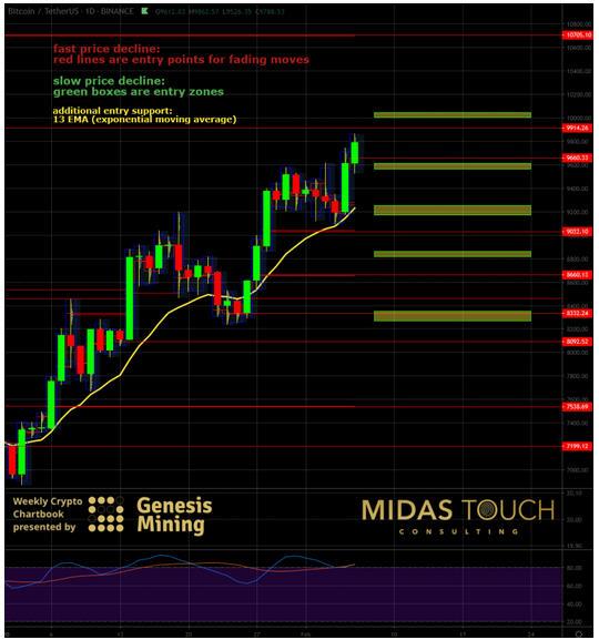 We have been exploiting already the first strong push of the bitcoin market, posting entry and exit signals live in our telegram channel with great success. We will continue to do so, expecting an even stronger second and third leg to follow.