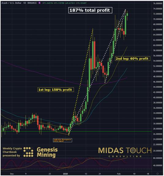 Zcash in US dollar daily chart as of February 6th, 2020
