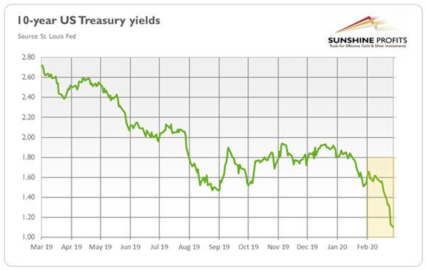 Chart 1: US 10-year Treasury yield from March 2019 to March 2020.
