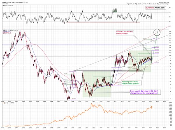 The USD Index is at about 100 at the moment of writing these words, so the upside potential is substantial.