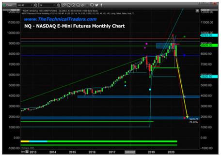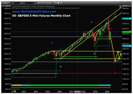 This ES Monthly chart highlights our expectation that the US Stock market will attempt to establish a deeper bottom in price that may take the form of a FLAG formation setup. We don’t believe the continued disruption to the global markets will do anything to support the past 3+ week recovery in the US markets. Global investors will likely end up backing the US as the leader in this recovery, yet we believe the actual bottom in the markets will take place over the next 12+ months and likely complete just before the November 2020 elections.
