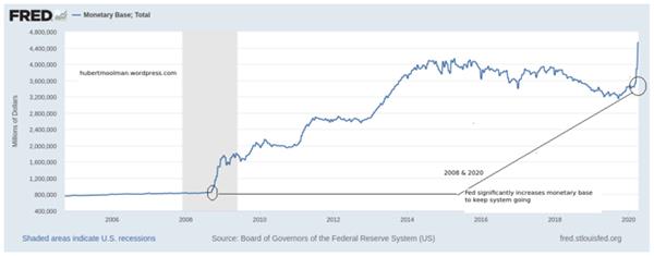During the 2008 financial crisis the Fed significantly increased the US monetary base to keep the system from collapse. They are currently in a similar situation, and have done (is doing) the exact same thing.