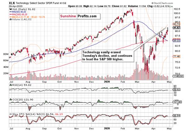 But where would the engine of upcoming S&P 500 gains be? Energy (XLE ETF), materials (XLB ETF) and industrials (XLI ETF) have led the charge yesterday too. Consumer discretionaries (XLY ETF) have also smartly dealt with Tuesday’s setback, similarly to financials (XLF ETF).