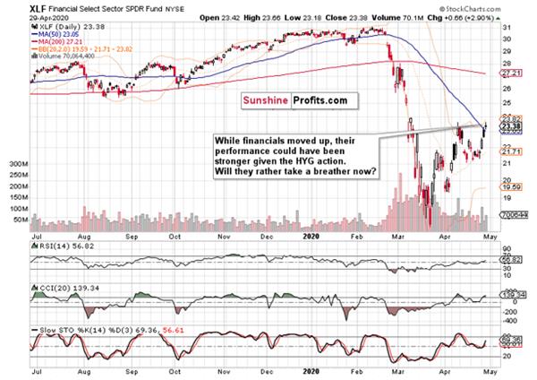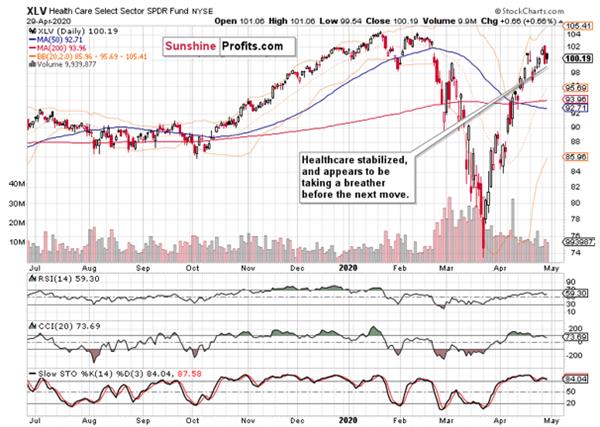 Given the strong performance in the credit markets, financials a bit surprisingly paused yesterday. It appears likely that similarly to healthcare, this sector needs to digest recent gains before the next move. And chances are, that the move would be higher when it arrives.