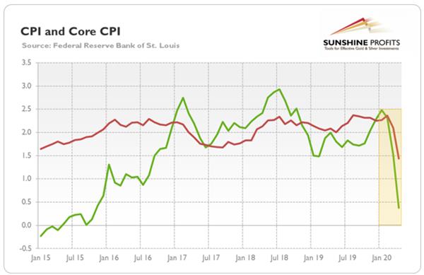 Not at all, we actually expected disinflation – we wrote in the Fundamental Gold Report published on April 16 that “in the short term, disinflationary pressure should prevail”. So, we never ruled out the possibility of disinflation or even