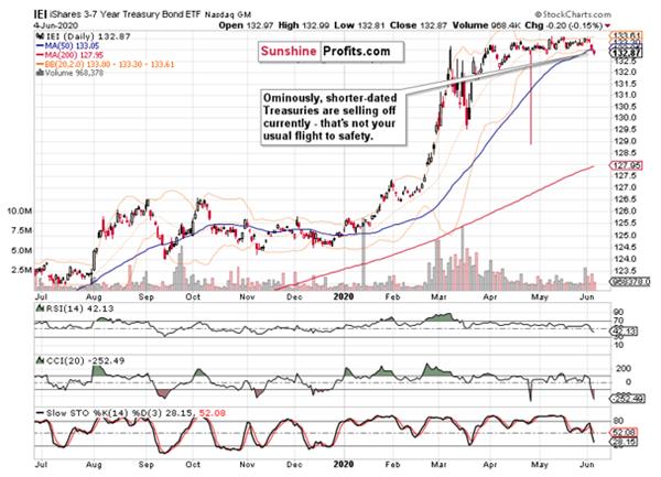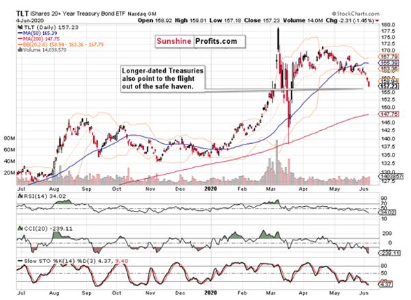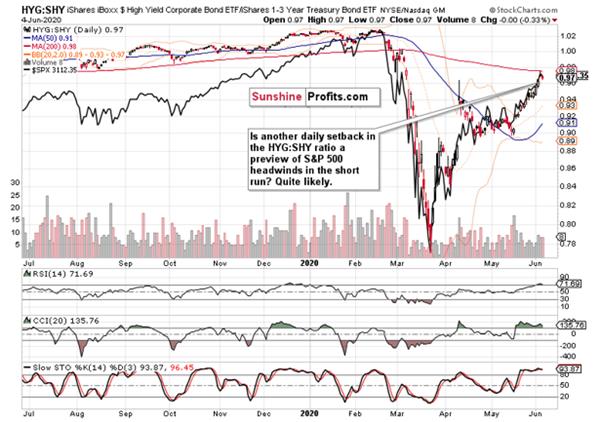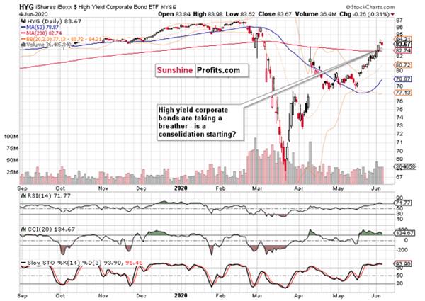 Investment grade corporate bonds (LQD ETF) confirm this opinion, because their decline happened on relatively lower volume. And as the ratio of high-yield corporate bonds to investment grade corporate bonds (HYG:LQD) stood still yesterday, these factors bode well not only for corporate bonds, but also for stocks.