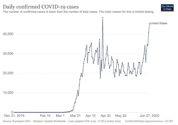 . The number of new daily confirmed Covid-19 cases has been rising again since mid-June, which means that coronavirus is far from being contained. Actually, the number of new cases has almost reached a new record level!
