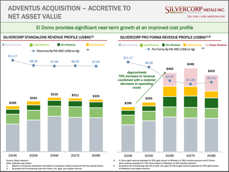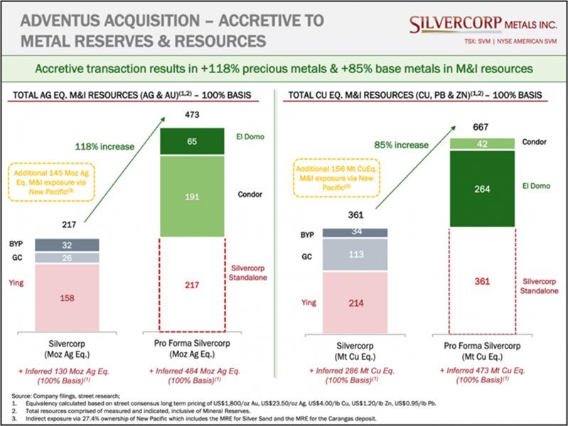 The acquisition of Adventus represents a pivotal and exciting milestone for Silvercorp and its shareholders, as the El Domo project provides immediate asset, geographic and metal diversification, with increased exposure to metals that are key to a low carbon future. It is accretive on both a net asset value/share and a mineral reserve/resource basis, with pro forma estimates showing over 118% growth in precious metal M&I resources and over 85% in base metal M&I resources.