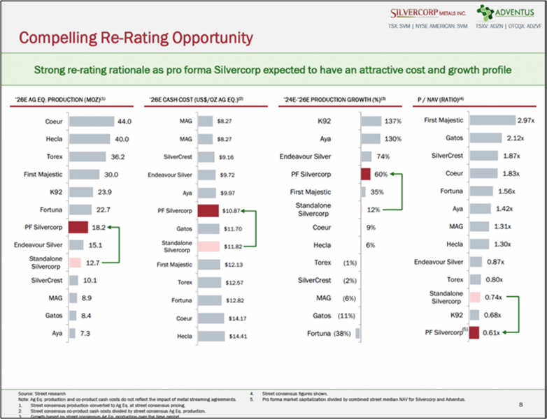 There is also a compelling re-rating opportunity relative to peers as Silvercorp’s pro forma is expected to present a more attractive cost and growth profile, as illustrated in the following chart.