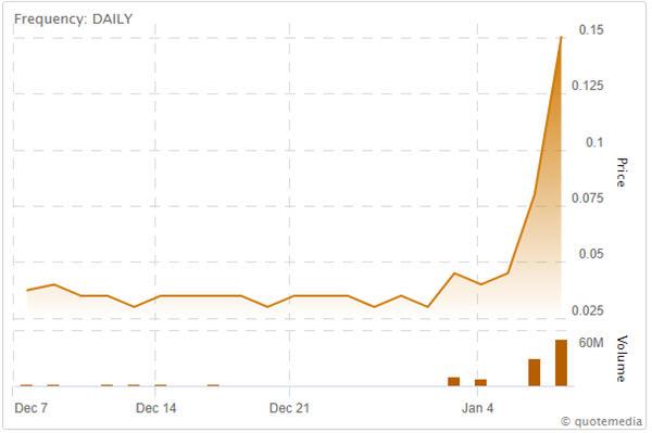 (Extreme Vehicle Battery Technologies Corp. stock chart - Dec 2020 to Jan 2021. Click to enlarge.)
