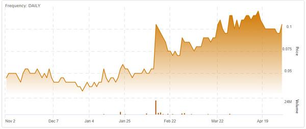 (Visionstate Corp. stock chart – Nov 2020 to April 2021. Click to enlarge.)